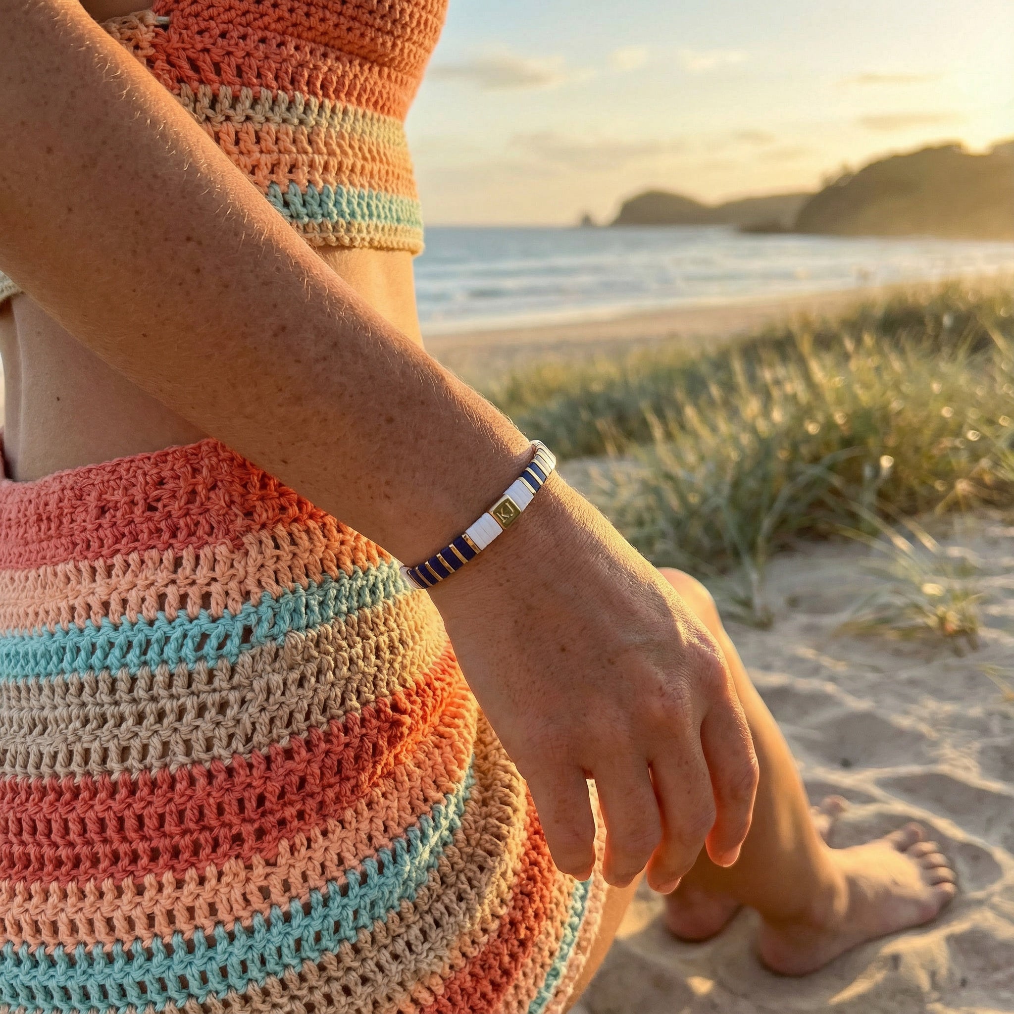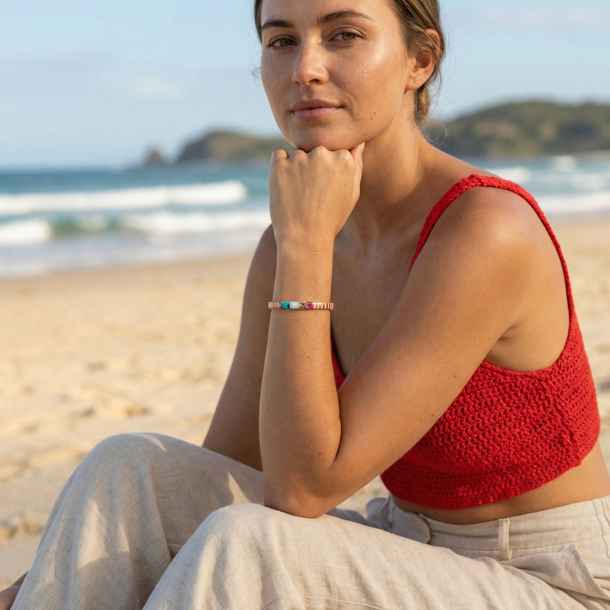 Every piece is individually handwoven using precision techniques that honour Japanese craftsmanship. We use strong, durable elastic to ensure flexibility and comfort while maintaining the delicate look of glass beadwork.
