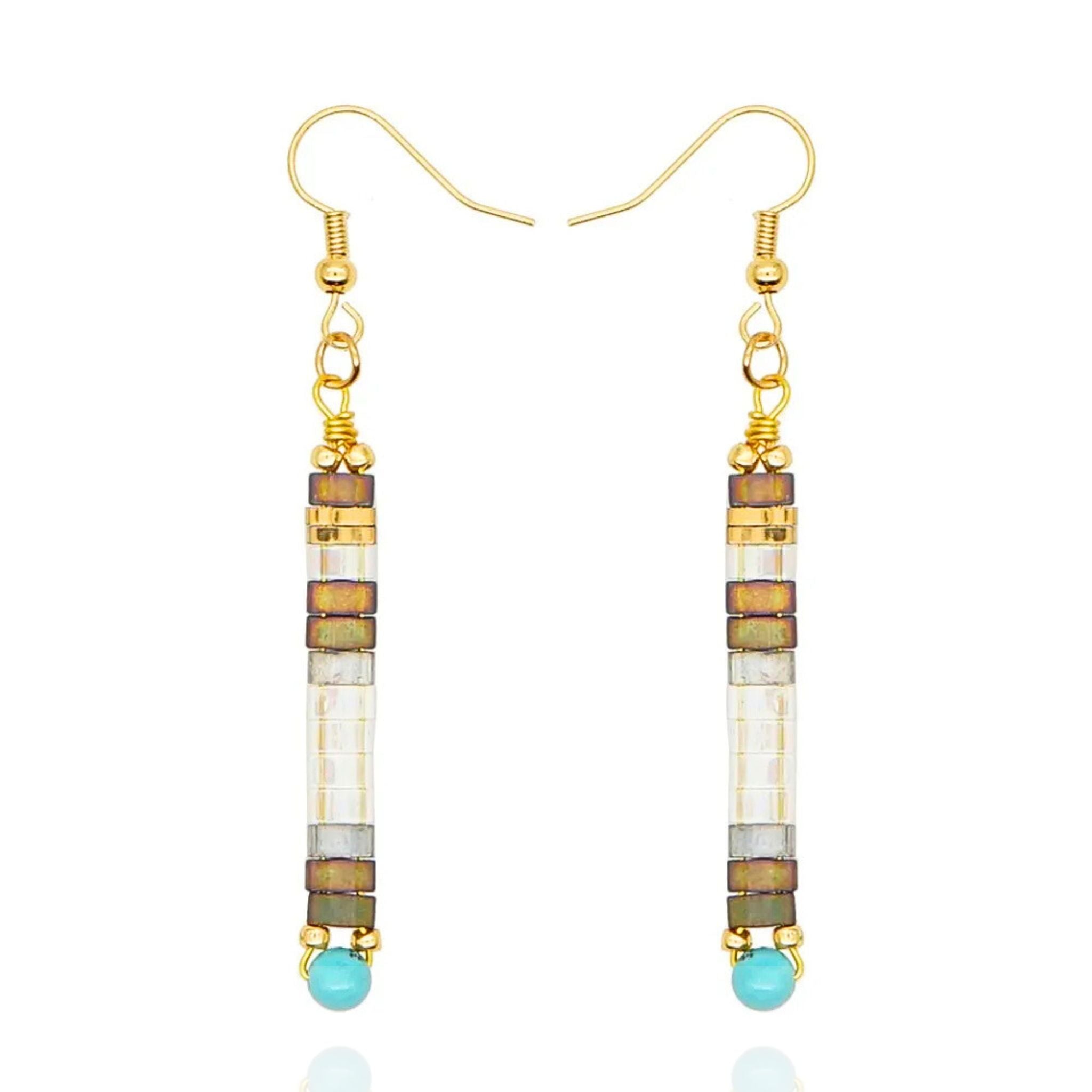 Introducing the CAMI Earrings, featuring a beautiful blend of dark green, brown, and white hues. These earrings capture the essence of nature's earthy tones, offering a sophisticated, grounded feel with a minimalist design.