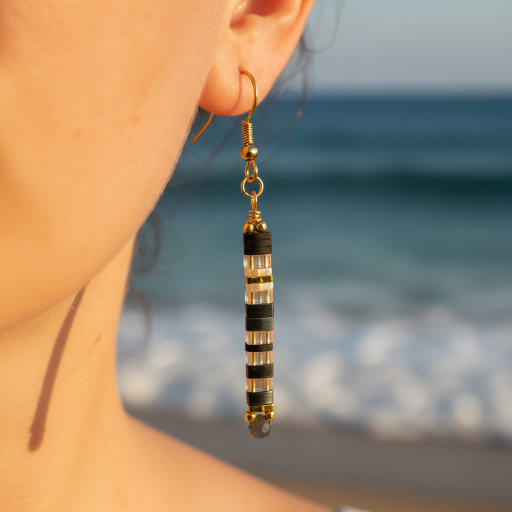 Introducing the LUNARE Earrings, a stunning blend of black and white beads, meticulously crafted to add a touch of sophisticated contrast to your collection. These earrings feature a striking design that makes a bold statement while maintaining a refined elegance.