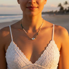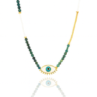This beautiful handcrafted necklace is made from Japanese Miyuki glass seed beads and a stainless steel chain. The Evil-Eye pendant serves as a protective amulet with the primary purpose of warding off negative energy and providing protection.