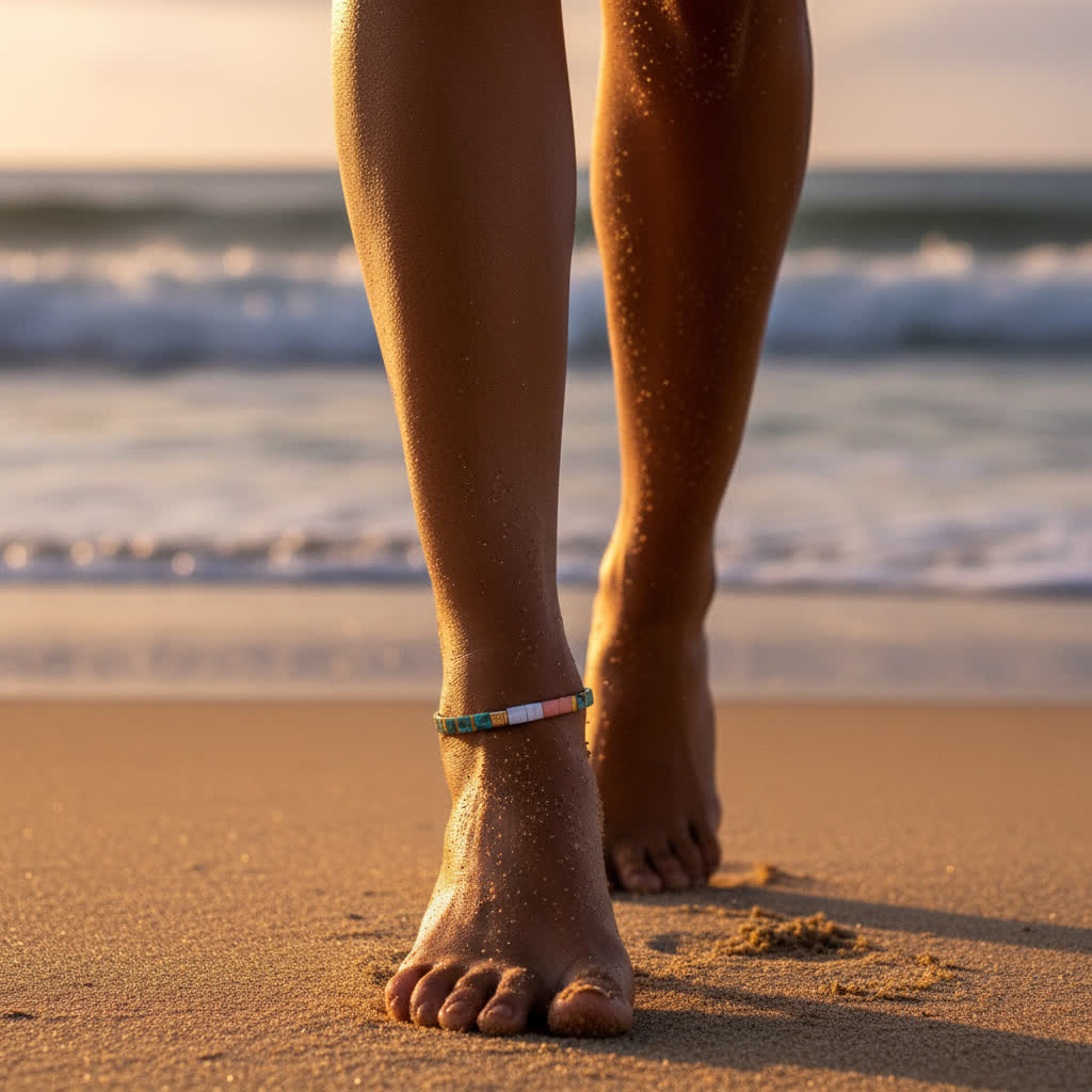 Handcrafted with care, our Tila bead anklet brings a touch of colour and joy to every step. Each Japanese Tila bead is made from tempered glass — smooth, unique, and beautifully reflective under the sun.