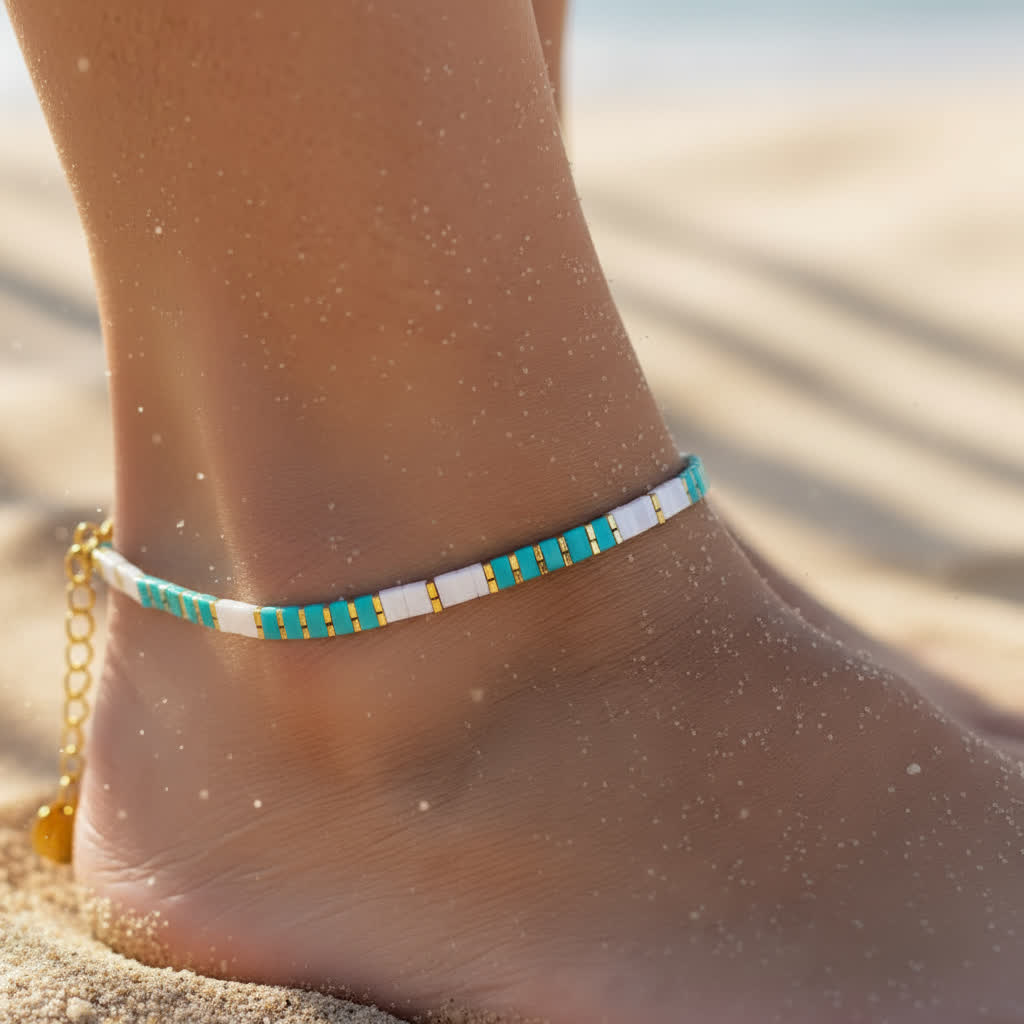 Handcrafted with care, our Tila bead anklet brings a touch of colour and joy to every step. Each Japanese Tila bead is made from tempered glass — smooth, unique, and beautifully reflective under the sun.