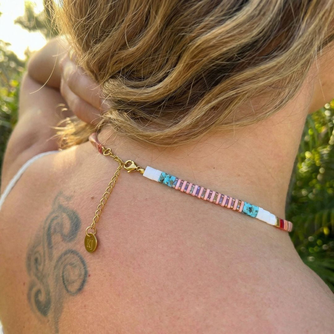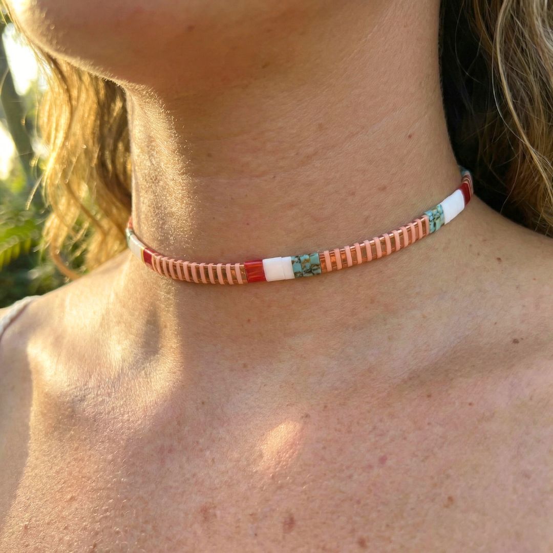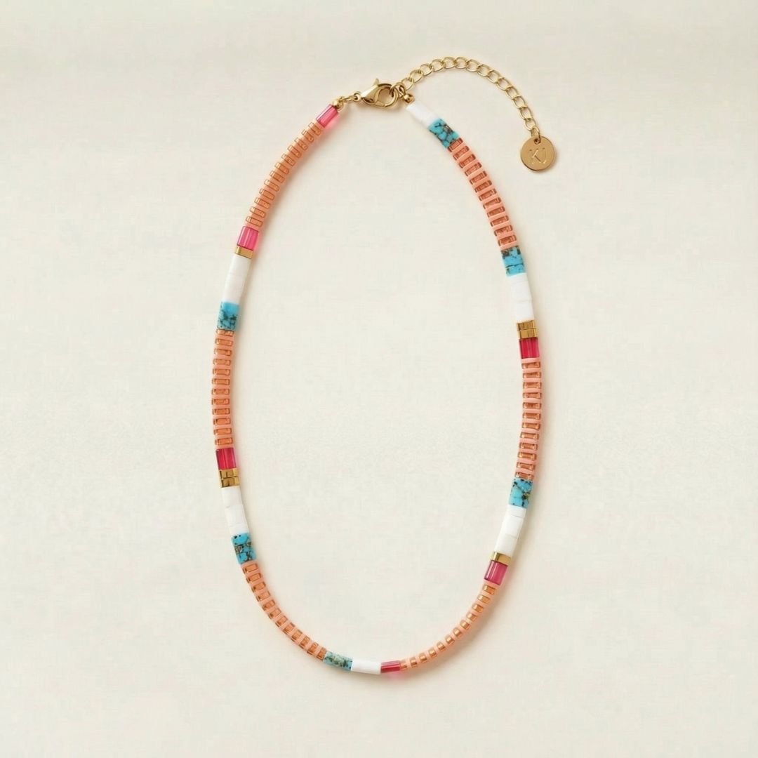 Our JOY Necklace is handcrafted with premium Japanese Miyuki Tila glass beads, known for their vibrant colour and long-lasting quality.