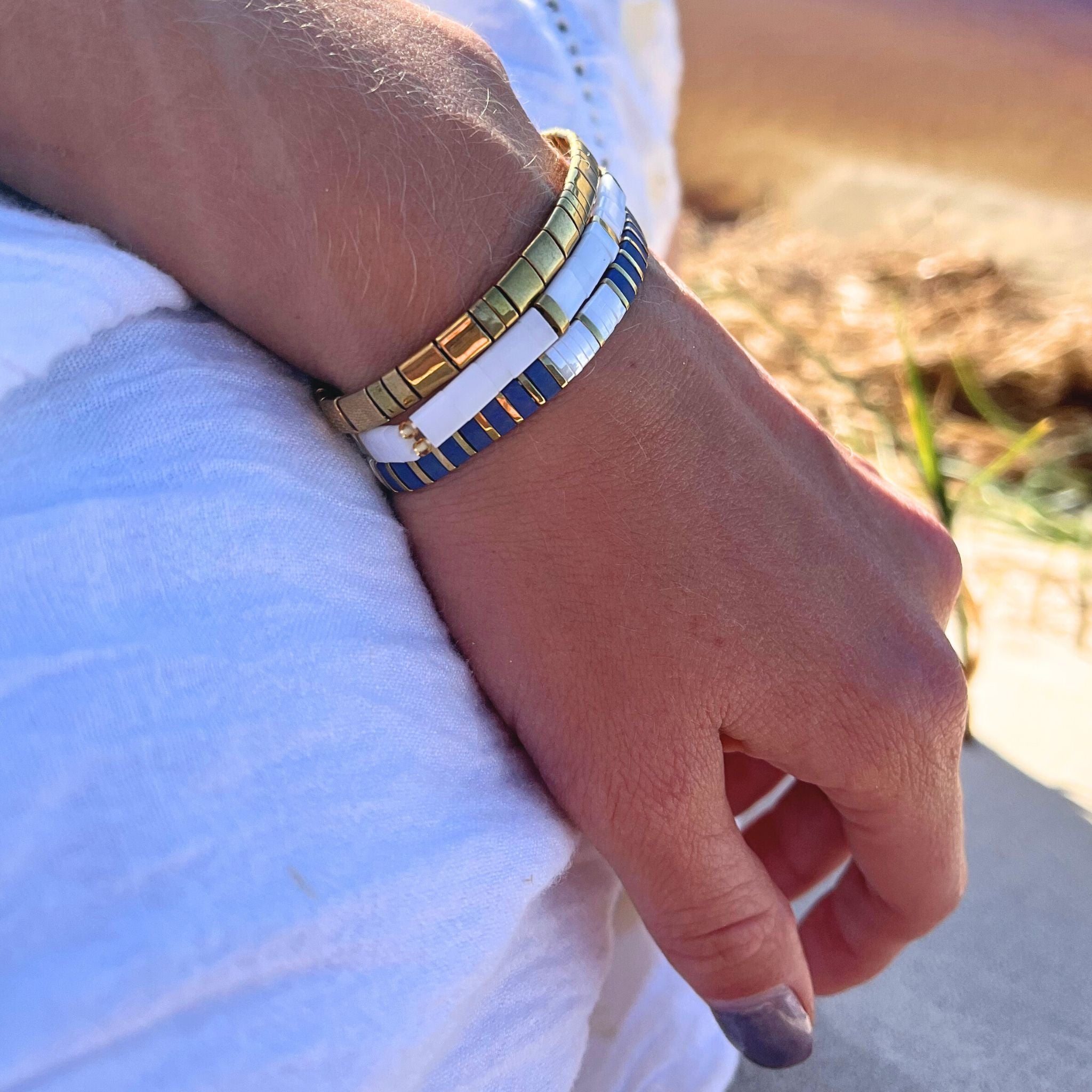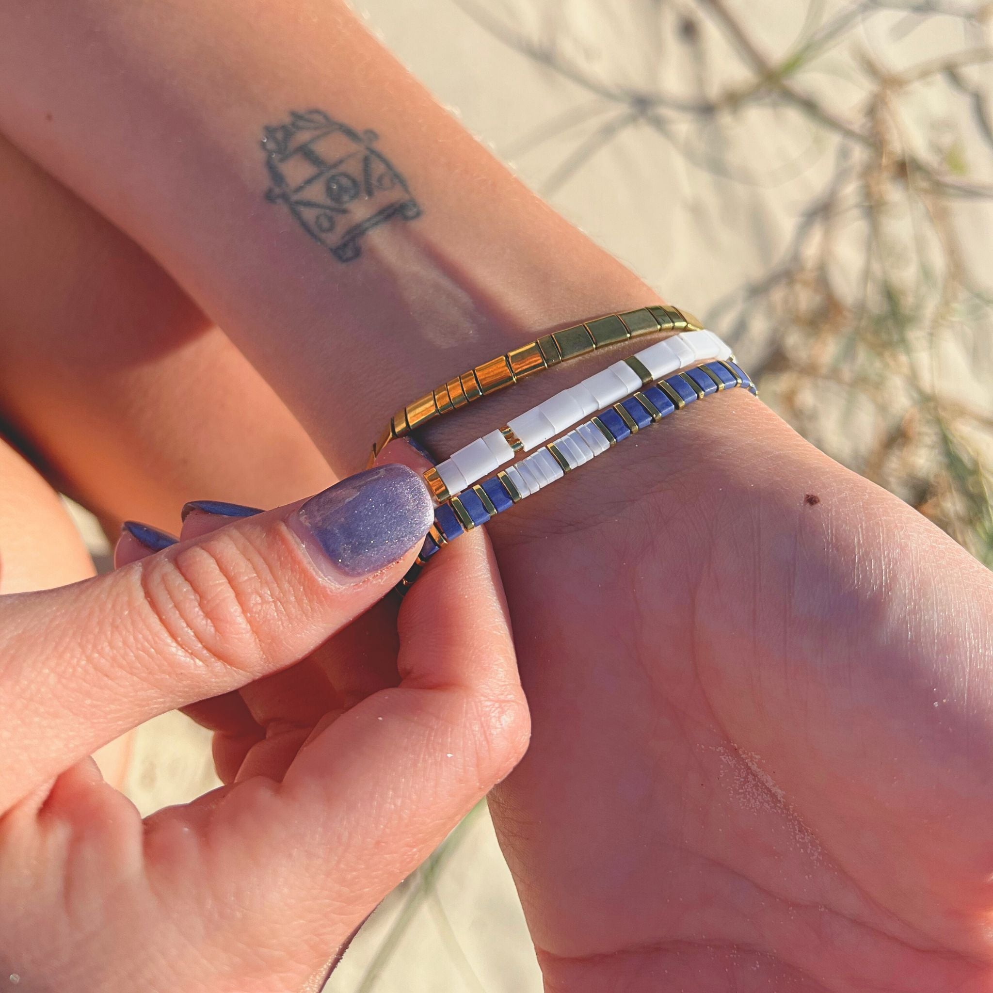 All of our bracelets are delicately handcrafted from Japanese tempered glass beads & 24k gold plated beads, the beads are bound onto a durable stretch elastic chord.
