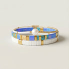 These serene, water-inspired Tila bead bracelets, paired with an elegant pearl gold bracelet, capture the calming essence of Japanese hot springs. Perfect for a peaceful yet sophisticated look.