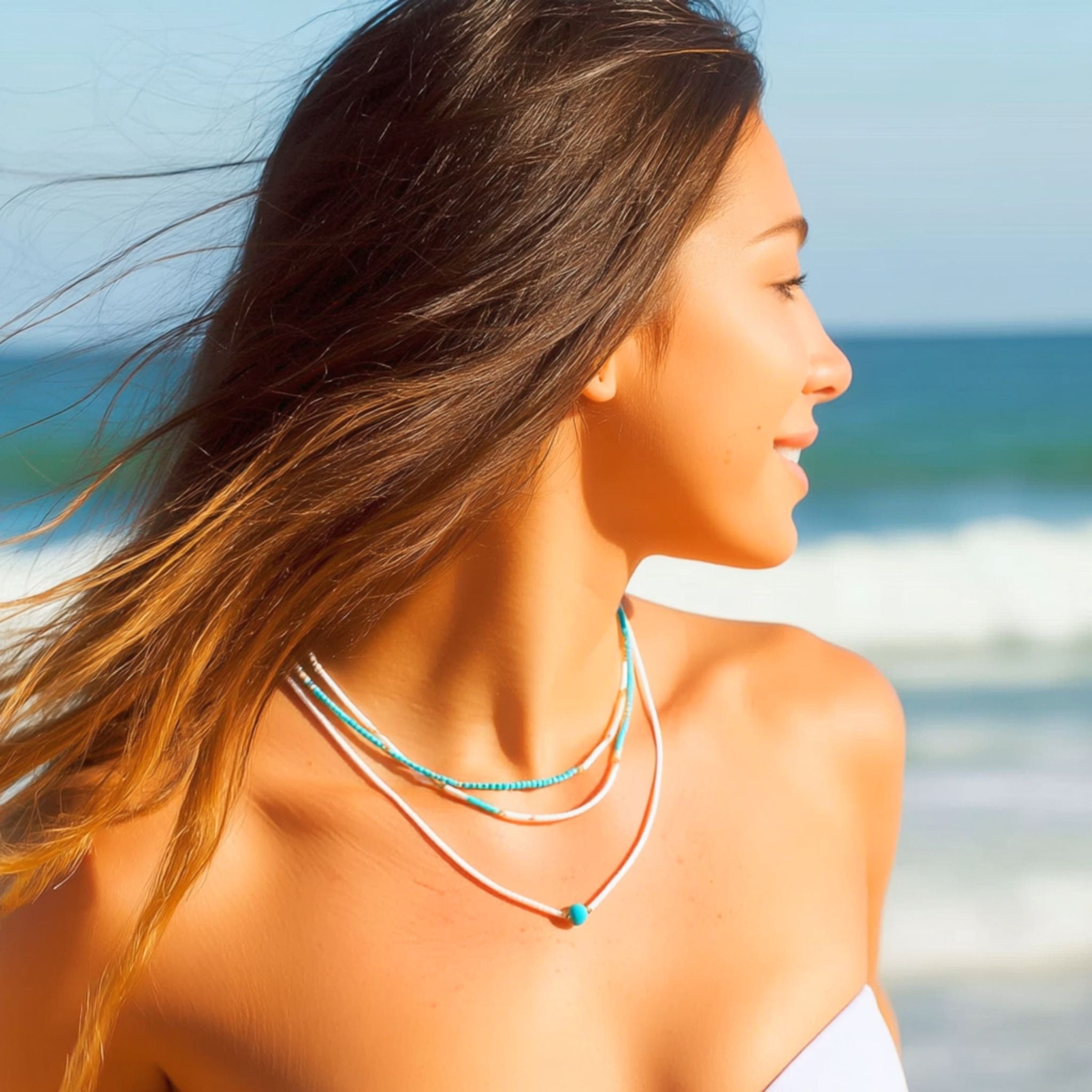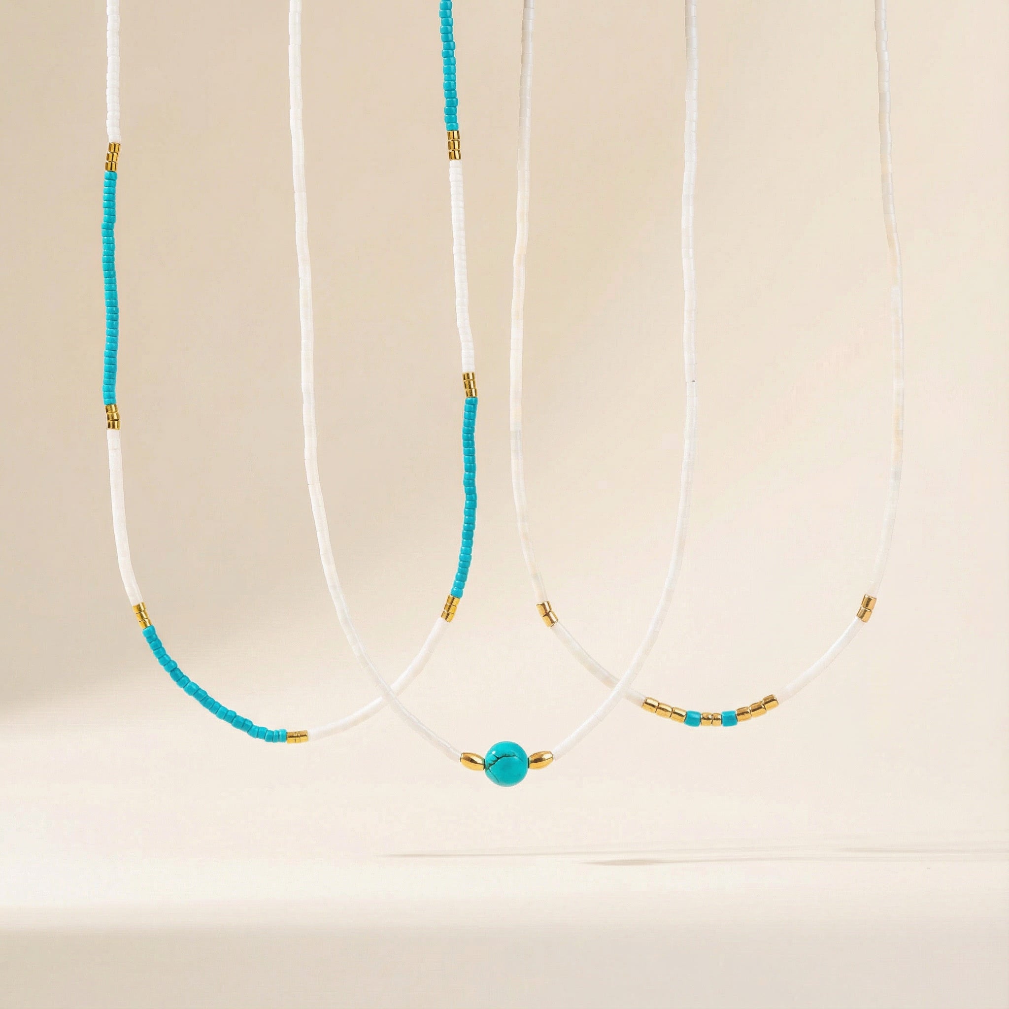 Discover our beautiful necklaces, delicately handcrafted with Japanese Miyuki seed beads and bound together on a stainless steel chain.