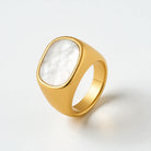 Elevate your style with the Gold Serenity Ring, a true masterpiece of craftsmanship. The 14k gold band shines with a radiant glow, symbolizing luxury and refinement, while the delicate gemstone at the center adds a touch of elegance to the design.