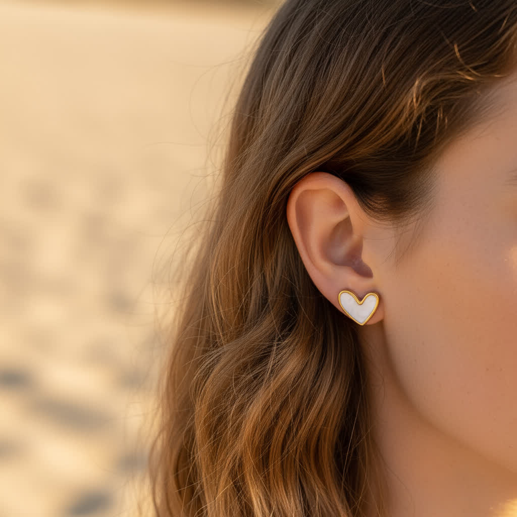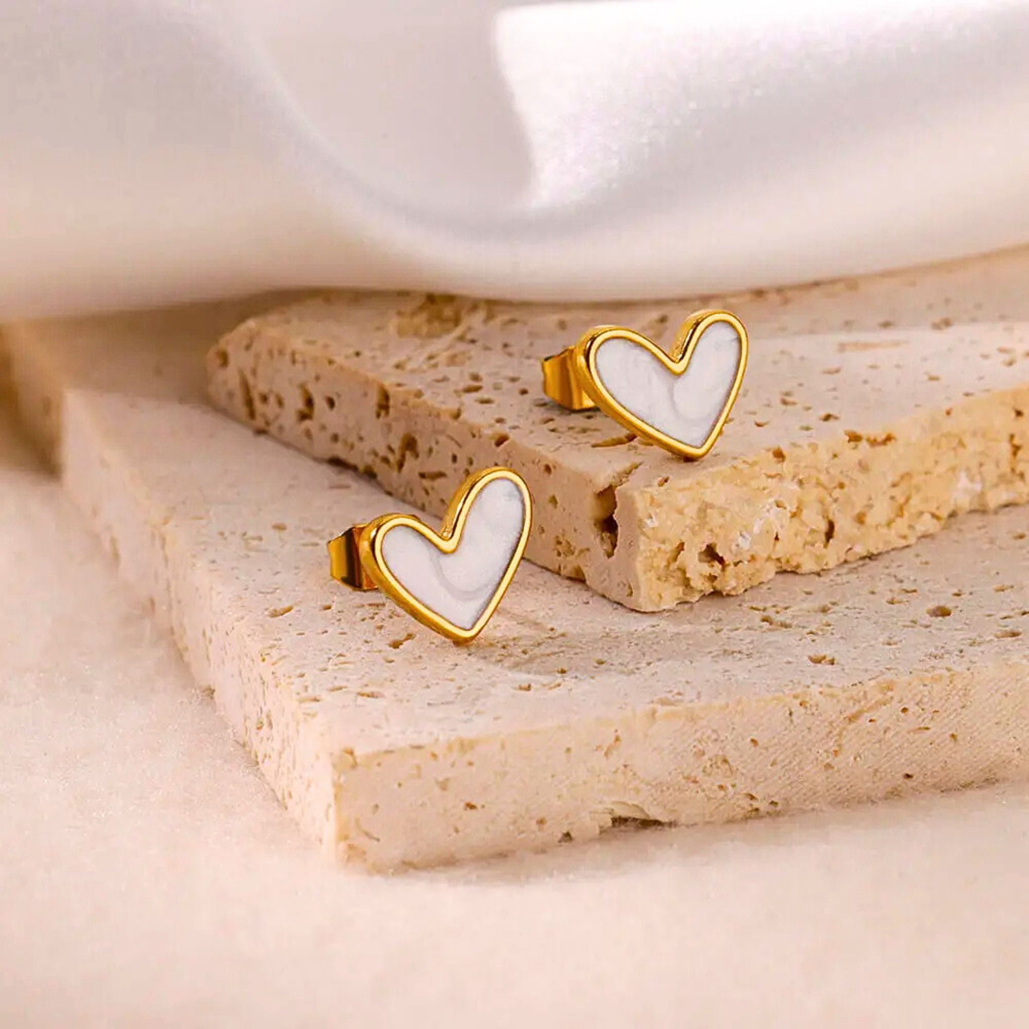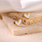 Elevate your style with our Sweetheart Earrings—a dazzling pair of loveheart-shaped earrings crafted in stunning gold and accented with pristine white detailing.