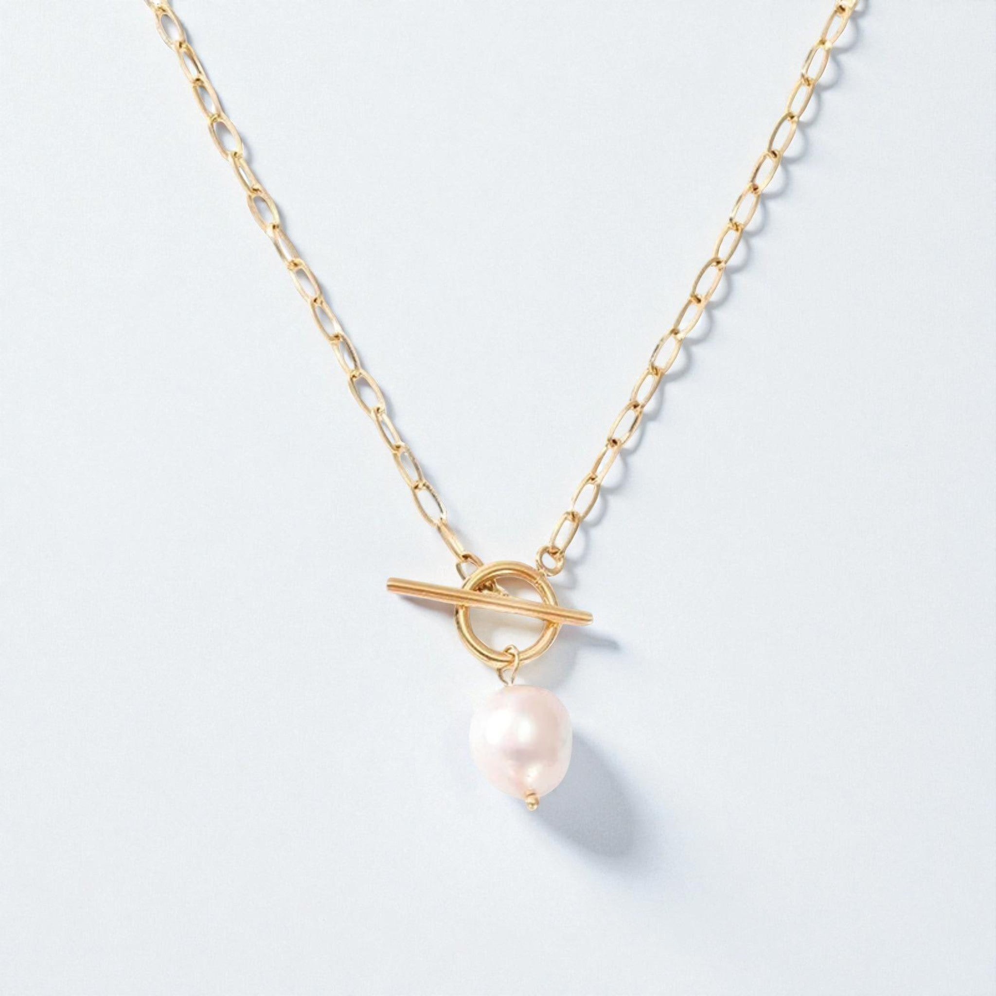 Add a touch of elegance to any outfit with our Mermaid's Treasure Necklace. Featuring a luminous pearl pendant suspended from a beautifully crafted golden knot bar, this necklace exudes sophistication and charm. The front attachment design adds a unique flair, making it an exquisite focal point for any look.