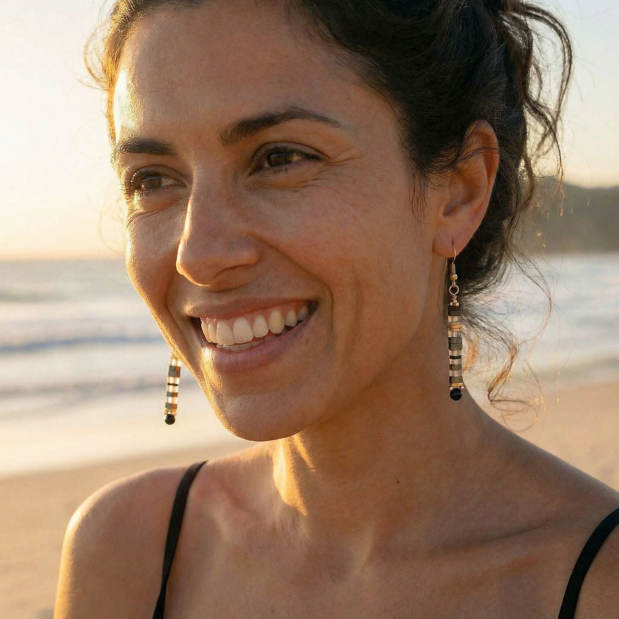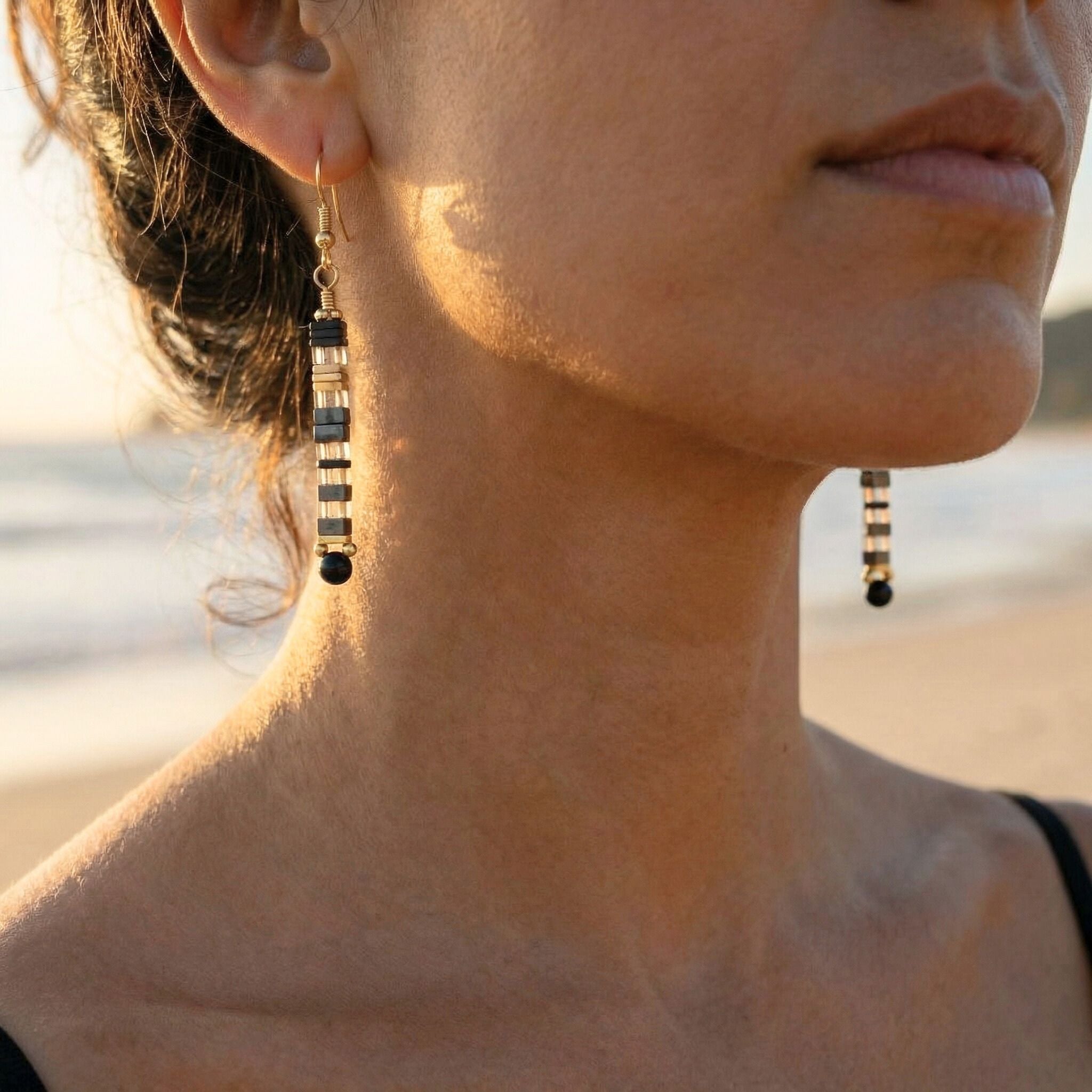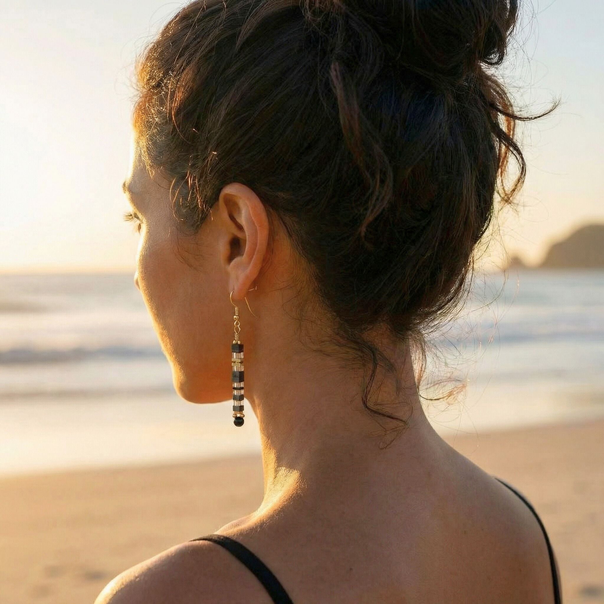 Introducing the LUNARE Earrings, a stunning blend of black and white beads, meticulously crafted to add a touch of sophisticated contrast to your collection. These earrings feature a striking design that makes a bold statement while maintaining a refined elegance.